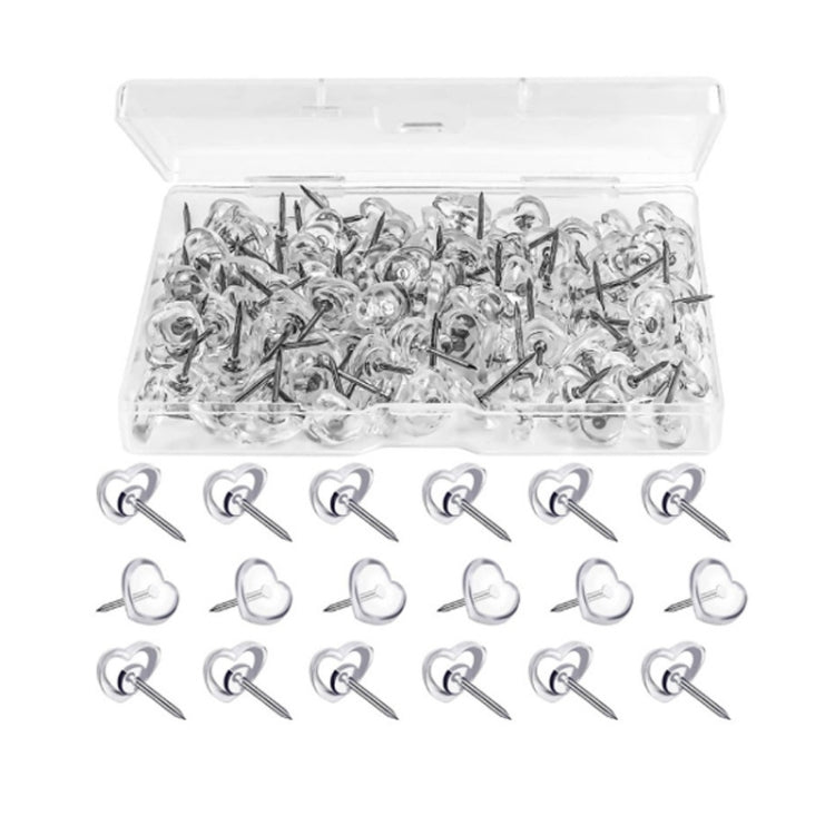 100pcs /Box 7.9x5.8x3cm Love Plastic Studs DIY Office School Colorful Pins(Transparent)