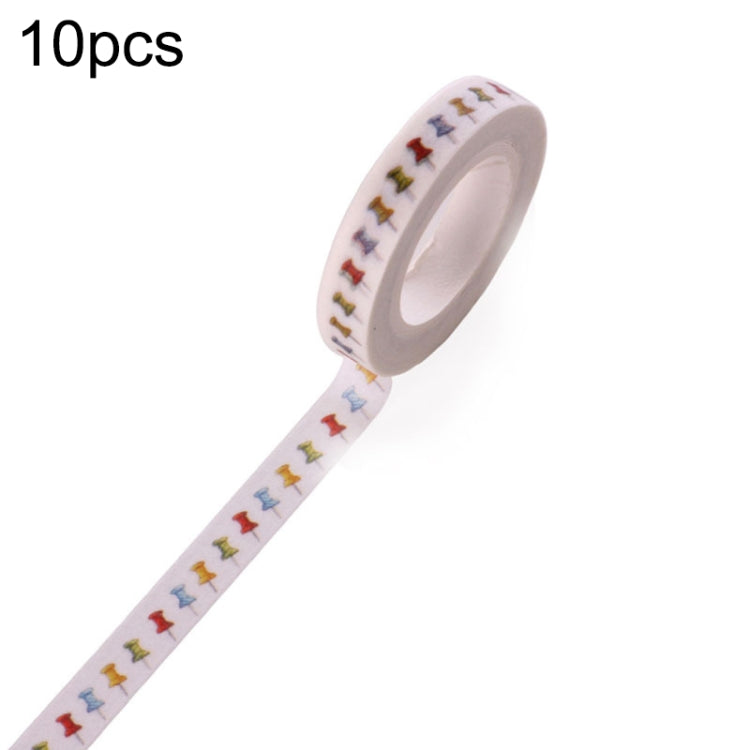 10pcs Paper Tape Hand Ledger Decoration Sticker, 8mmx10m(Colorful Pushpin SM-27)