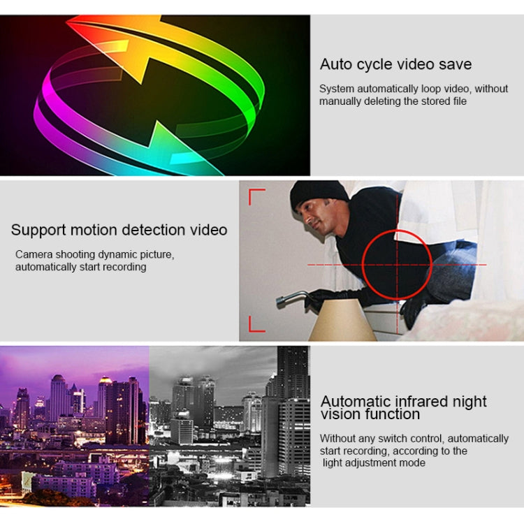 9.Video mode: Manual video recording, time recording, alarm recording