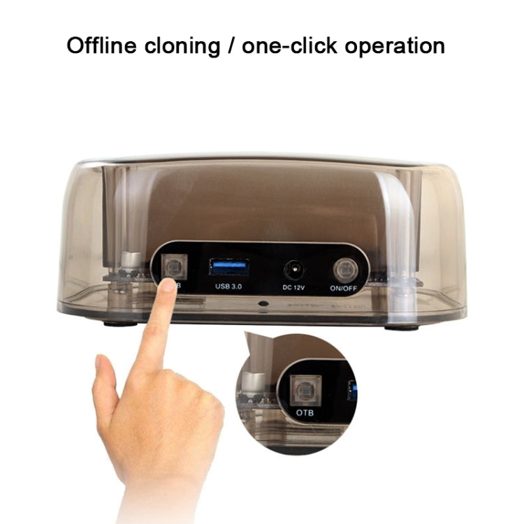 2.5 / 3.5 inch USB3.0 Dual SATA HDD Enclosure with HUB & OTB Function, The Maximum Support Capacity: 16TB
