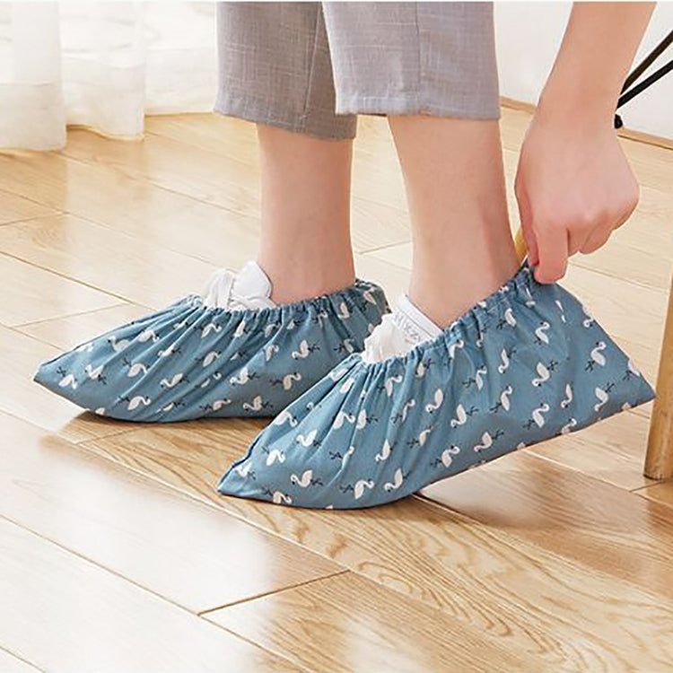 2 Pair Thicken Reusable Elastic Shoe Cover Home Indoor Antiskid Overshoes Flamingo Dust Waterproof Shoe Cover(Grass Blue)