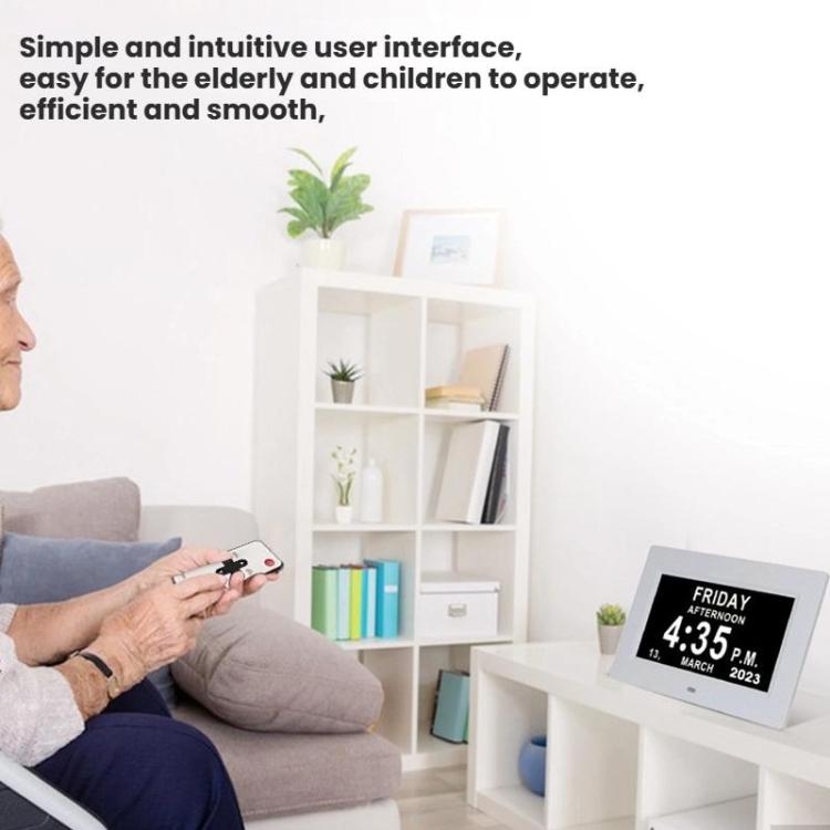 7-inch Digital Frame Calendar Day Clock With 3 Medication Alerts, 5 Custom Alarms, Multi-Language Support US Plug Black