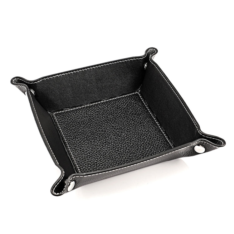7001 Leather Desktop Square Storage Box Household Life Oddments Tray(Black)