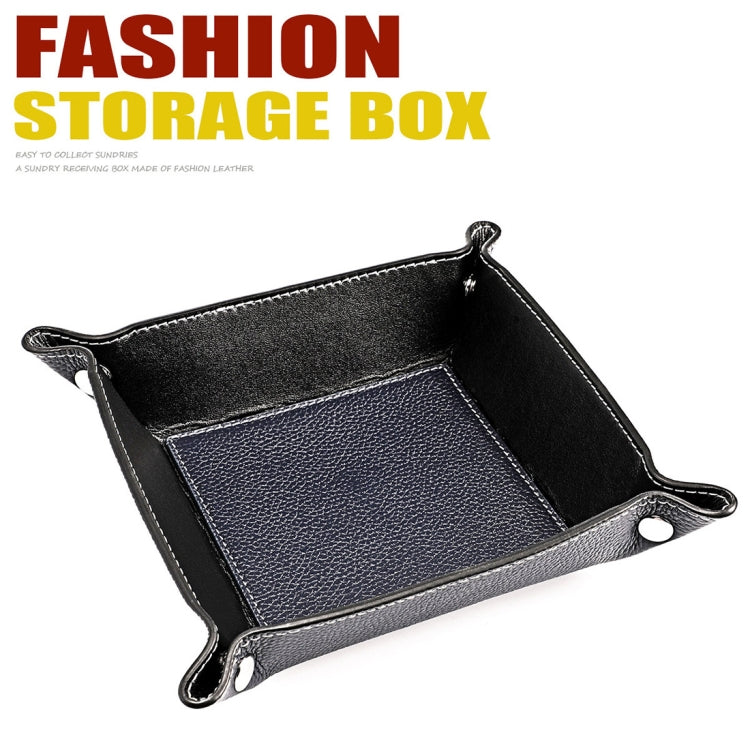 7001 Leather Desktop Square Storage Box Household Life Oddments Tray(Dark Blue)