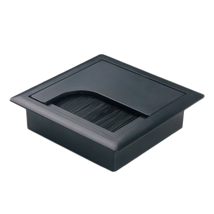 ABS Table Rectangle Wire Hole Cover Outlet Port With Brush PC Desk Cable Organizer, Size: 80x80mm Black