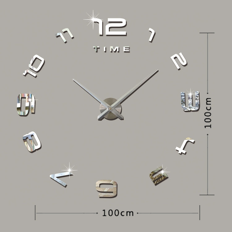 Bedroom Home Office Decoration Modern Frameless Large Number DIY 3D Mirror Wall Sticker Quiet Clock, Size: 100*100cm(Silver)