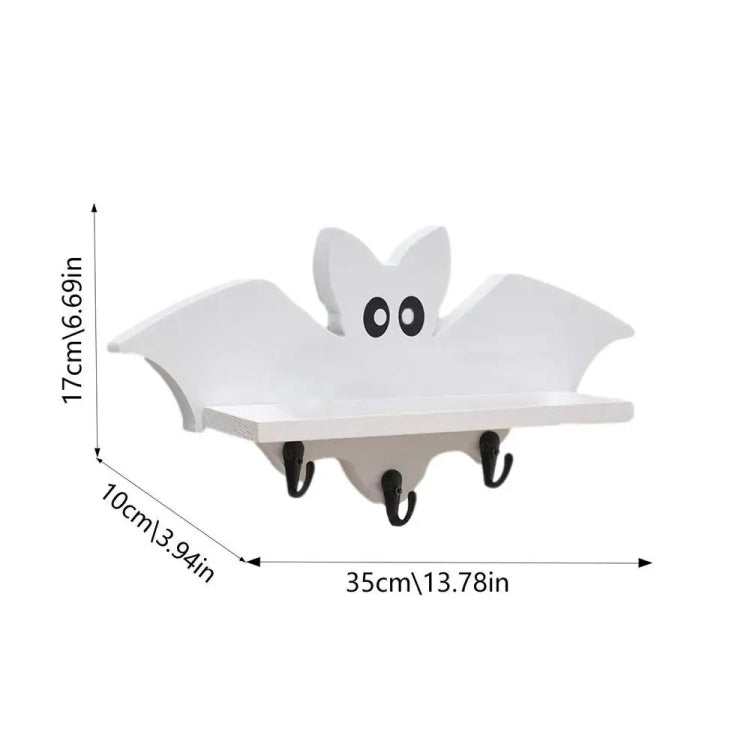 Cartoon Bat Shape Wooden Wall Mount Storage Rack Key Holder 35x17cm(White)