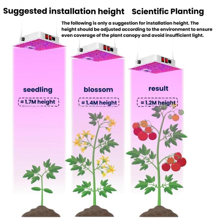 7. Adjust the installation height according to the environment to ensure that the light evenly covers the plant canopy and avoid insufficient light