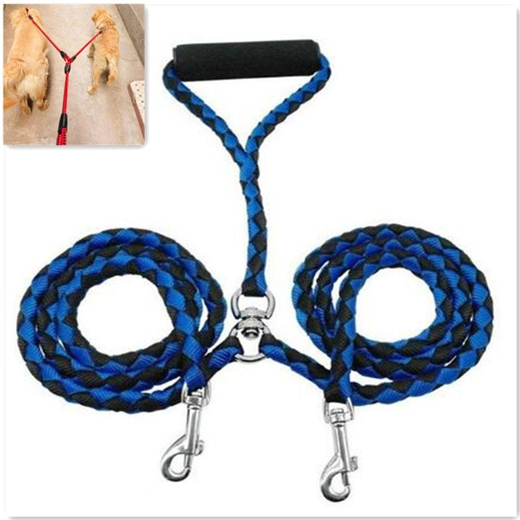 Double Dog Leashes Anti-winding Pet Traction Rope, Size:1.4m(Blue Black)