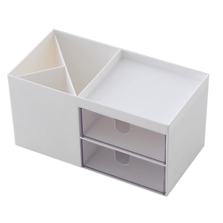 Dual Drawers Desktop Plastic Storage Box Makeup Organizer Case Cosmetic Container, Size:17.6X9X9.2cm(White)