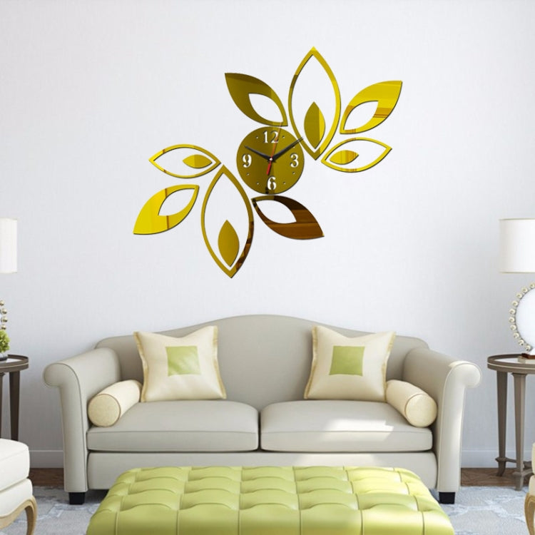 Flower Art Modern Design DIY Removable 3D Crystal Mirror Wall Clock Wall Sticker Living Room Bedroom Decor(Gold)