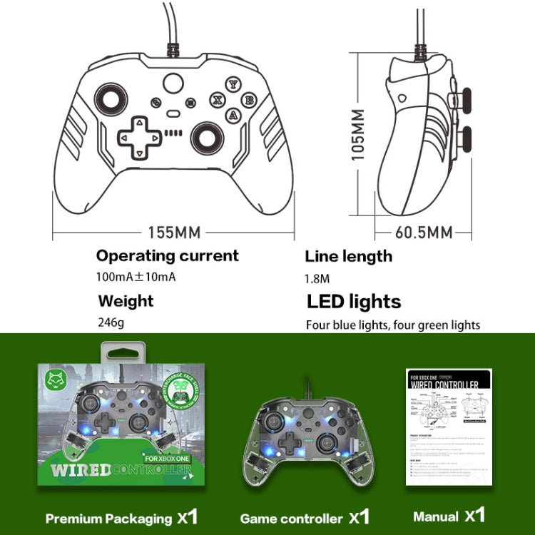 For Microsoft XBOX One / PC XO300 RGB Luminous Wired Gamepad(Transparent)