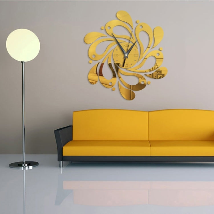 Home Crystal Acrylic Quartz Mirror Clock Jewelry Clock Petal Pattern Clock(Gold)