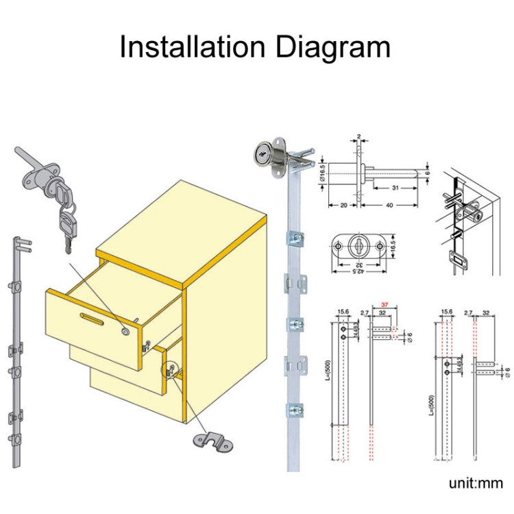 Home Office Desk Drawer Triple Connect File Cabinet Lock, Style: Front Black
