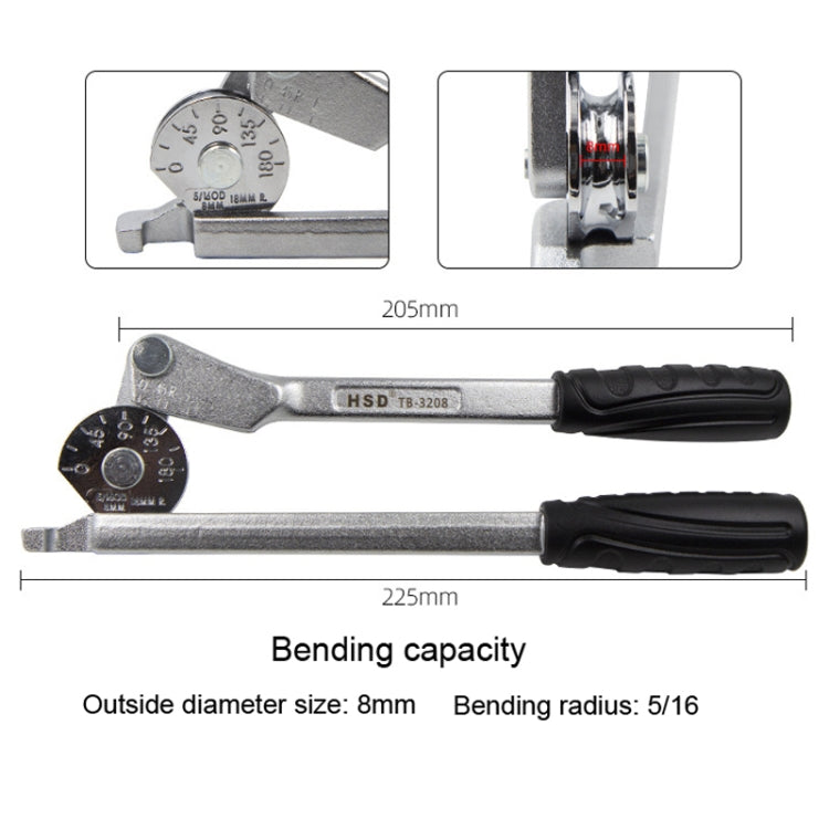 HSD TB-3208 8mm Diameter Manual Stainless Steel Pipe Iron Tube Bender Air Conditioner Copper Pipe Aluminum Pipe Bender