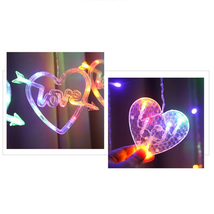 LED Heart-Shaped Decorative Lights Curtain Lights Holiday Dress String Lights, EU Plug(Colorful Light)