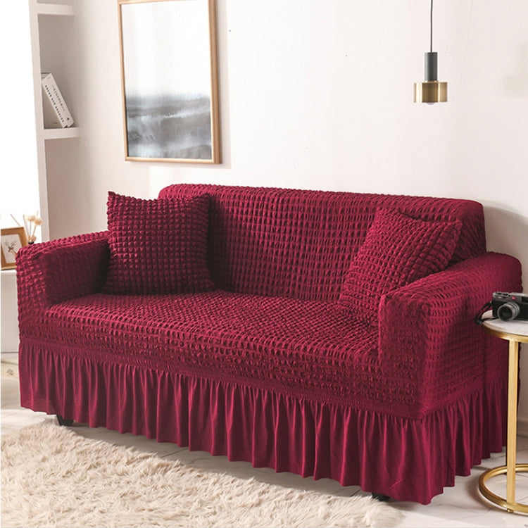 Living Room Stretch Full Coverage Skirt Style Sofa Cover, Size: Double M 145-185cm(One-color Wine Red)
