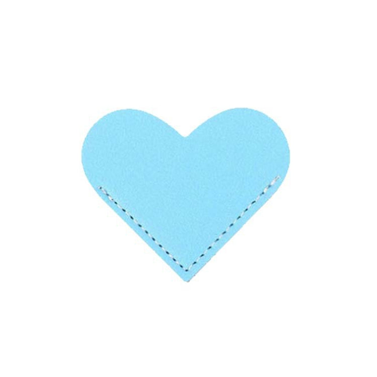 Mini Business Student Library Portable PU Leather Heart Shaped Bookmark(Sky Blue)