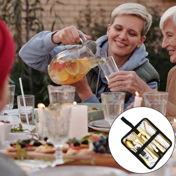 Portable Stainless Steel Cutlery Set Outdoor Picnic Knife And Fork Tool With Storage Bag, Style: A Model Black