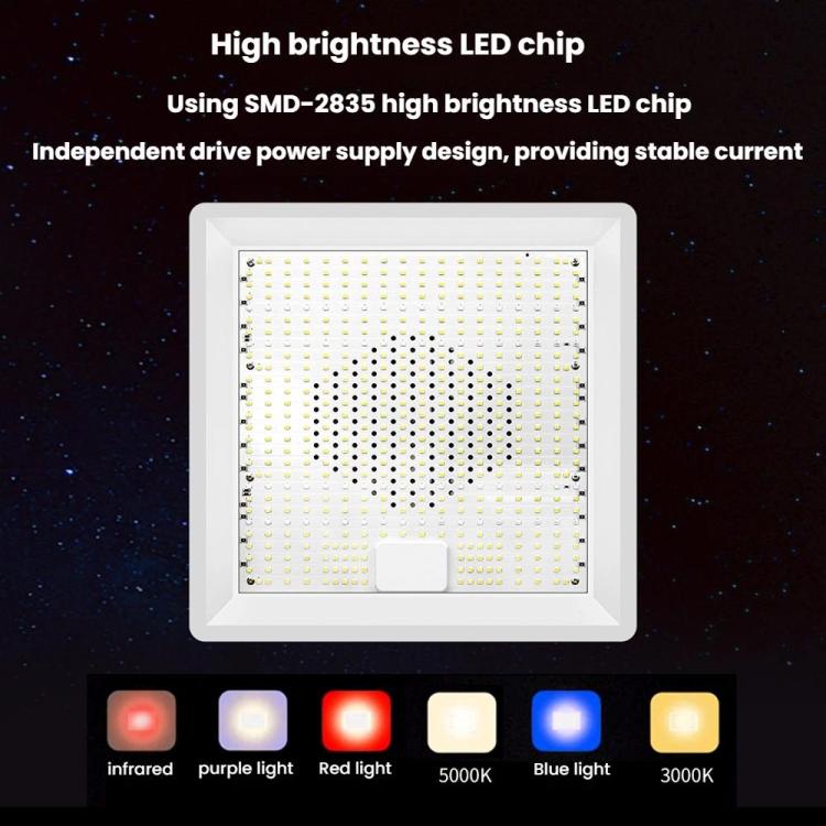 - Dimming model (552 LEDs): 72 red lights + 8 infrared lights + 8 purple lights + 231 5000K lights + 233 3000K lights
