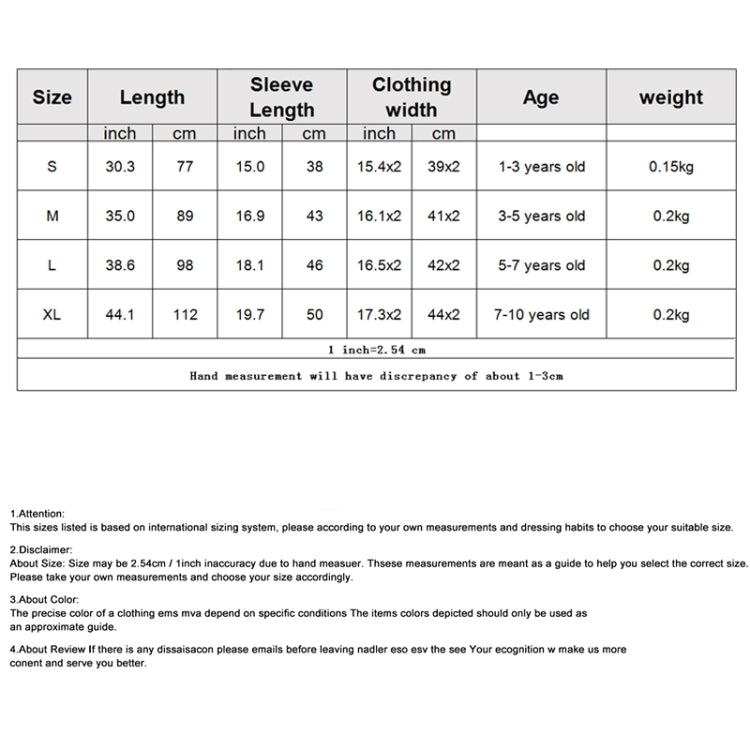 4. Model information: boy's height is 95 cm, size S; girl's height is 105 cm, size M