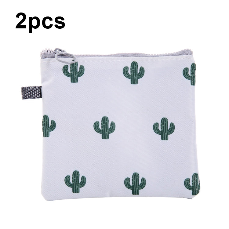 SN-031 2pcs Waterproof Zipper Sanitary Napkin Storage Bag Coin Card Bag(Cactus)