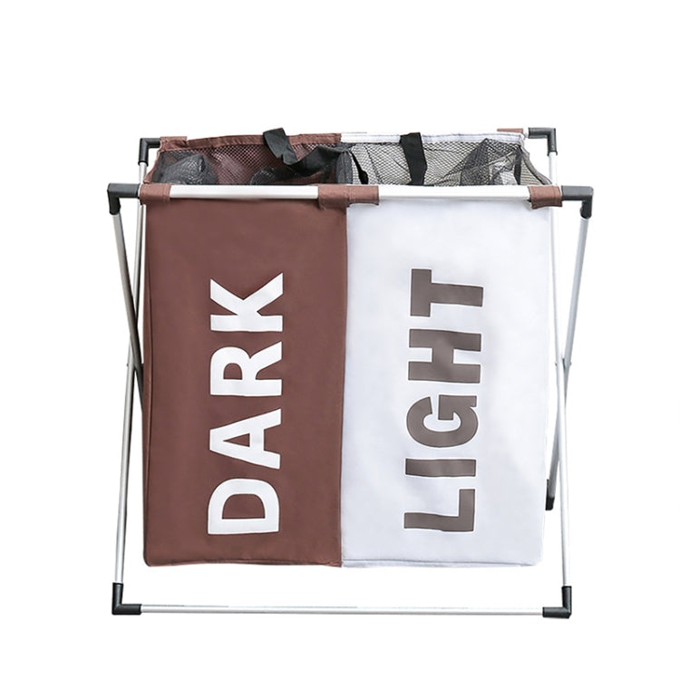 Two Grid Oxford Cloth Laundry Basket Dirty Clothes Waterproof Storage Bag Foldable Basket Bathroom Hamper(White+Coffee)