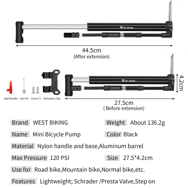 WEST BIKING High Pressure Bicycle Vertical Pump With Barometer
