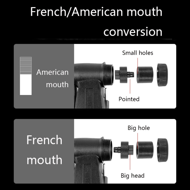 8. Features: French/American mouth conversion, light and portable, easy to install, free ball needle