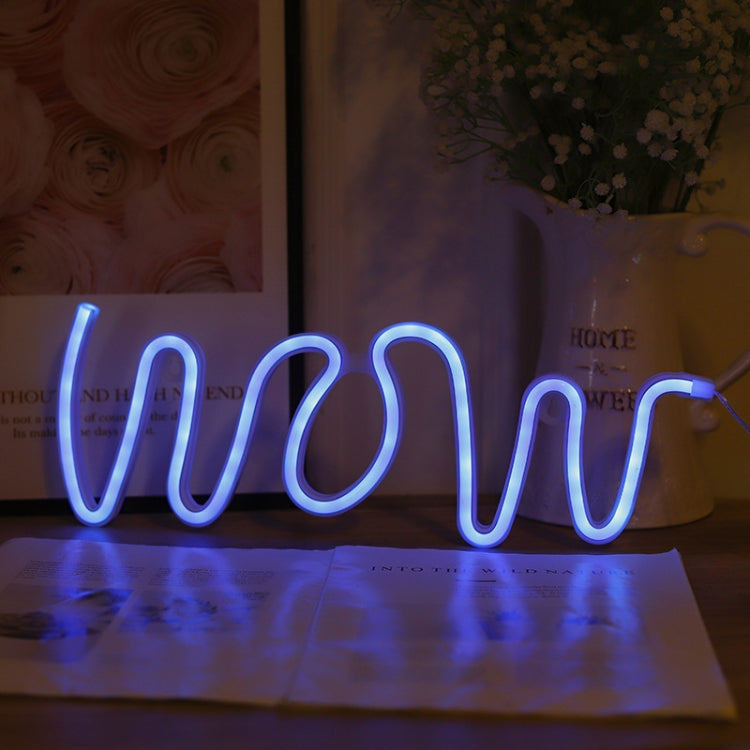 WOW Shape LED Neon Light Wall Hanging Bar Atmosphere Lights(Blue Light)
