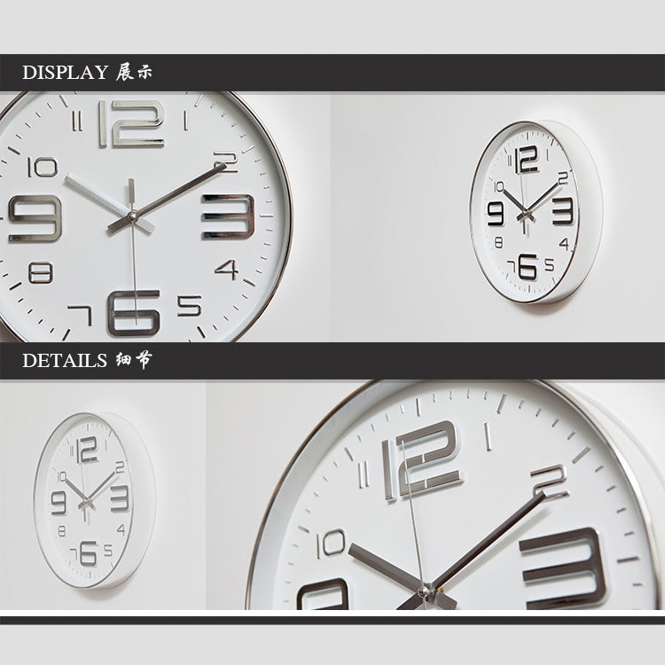 12 inch Creative Decorative Round Shape Living Room Simple Modern Quartz Wall Clock(Silver)