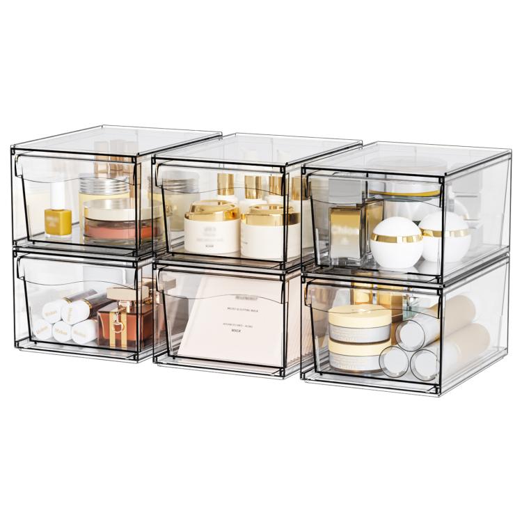2pcs /Pack Stackable Makeup Drawer Organizer Acrylic Cosmetic Storage Box(Transparent)