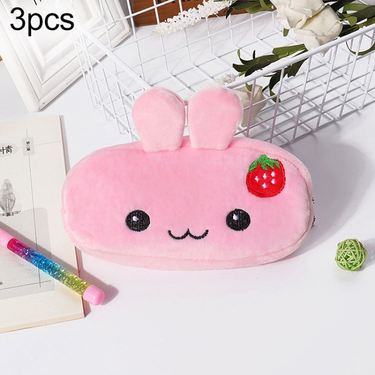 3pcs Children Cute Animal Plush Pencil Bag Stationery Storage Bag, Color: Strawberry Rabbit