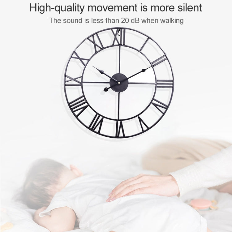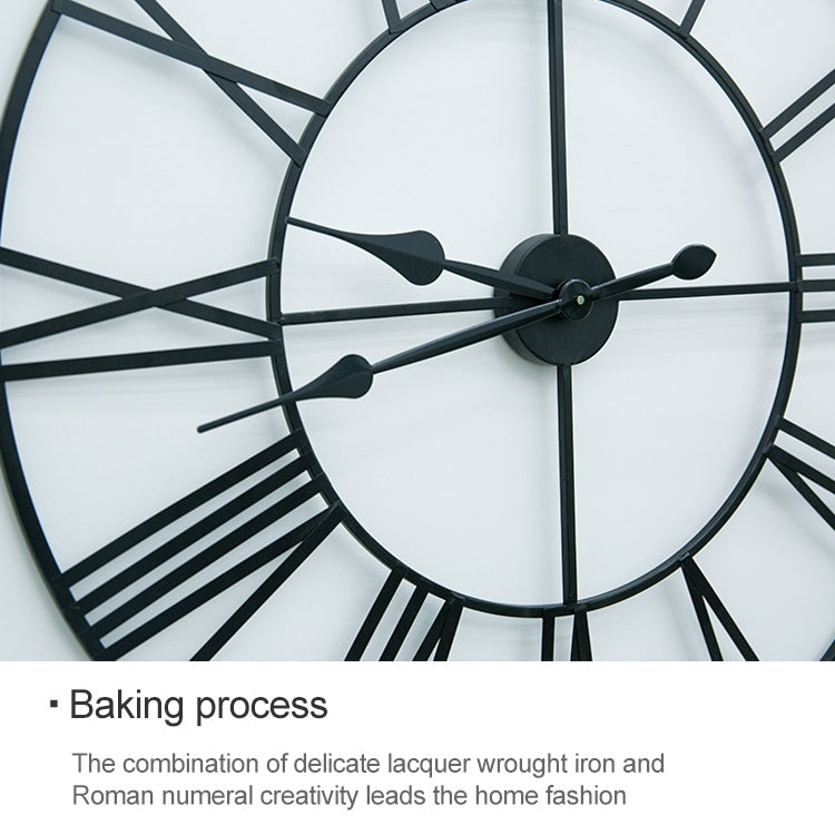 50cm Retro Living Room Iron Round Roman Numeral Mute Decorative Wall Clock (Black)