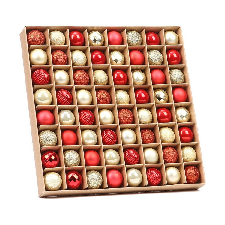64pcs /Pack 3cm Small Plastic Christmas Ball Ornaments Set for Xmas Tree(Gold Red)