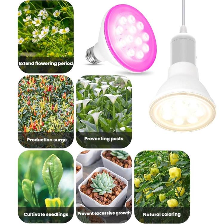 8 LEDs E27 Plant Growth Light Bulb Home Use Balcony Potted Plant Uniform Lighting Bulb(Sunlight)
