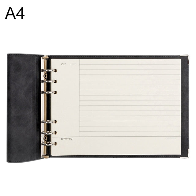 A4 Faux Leather Loose-leaf Grid Notebook, Style:Cornell Horizontal Wire Inner Core(Black)