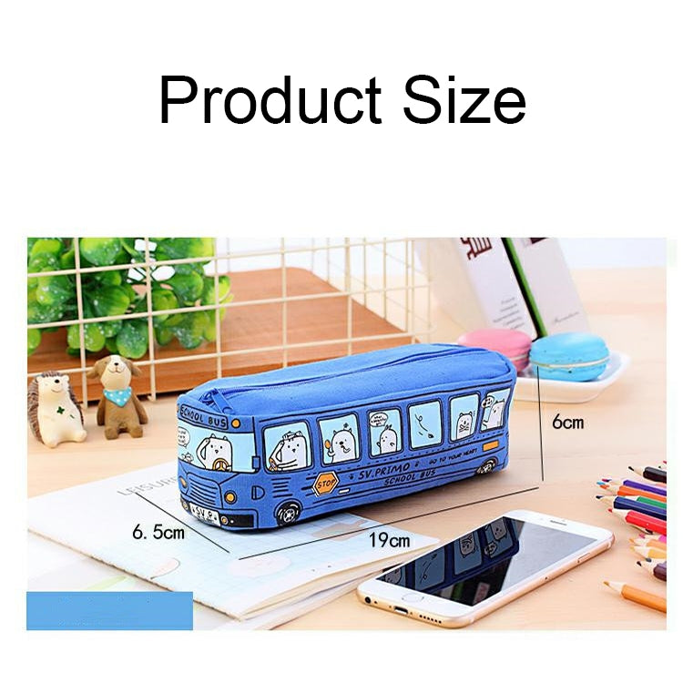 Cartoon Bus Student Stationery Pencil Case Large Capacity Canvas Stationery Box(Yellow)
