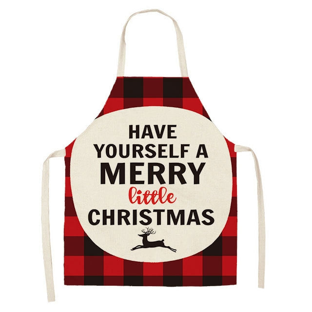 Christmas Plaid Series Cotton And Linen Apron Household Cleaning Overalls, Specification: 47 x 38cm(WQ-001307)