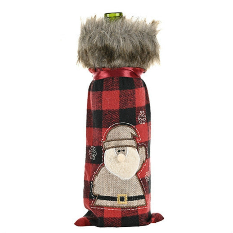 Decorations Red Lattice Wine Set Home Christmas Champagne Wine Bottle Set(Elderly)