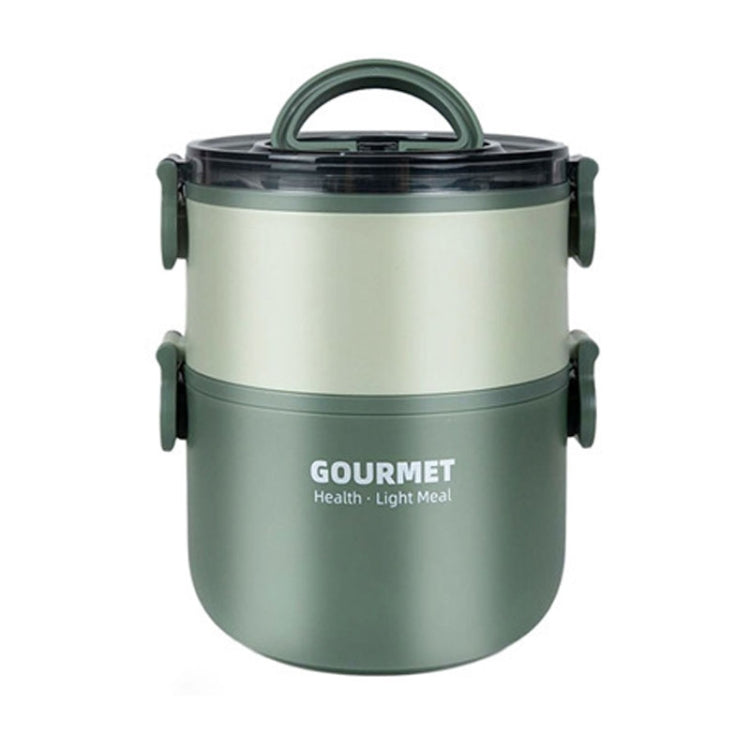 Dual-Layer 1600ml 304 Stainless Steel Insulated Bowl Student Plastic Shell Lunch Box(Green)
