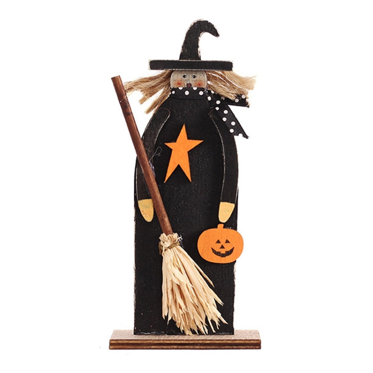 Halloween Decorations Witch Ghost Painted Wooden Ornament Party Decorative Props, Style: Broom Witch