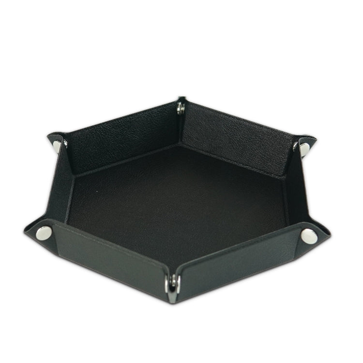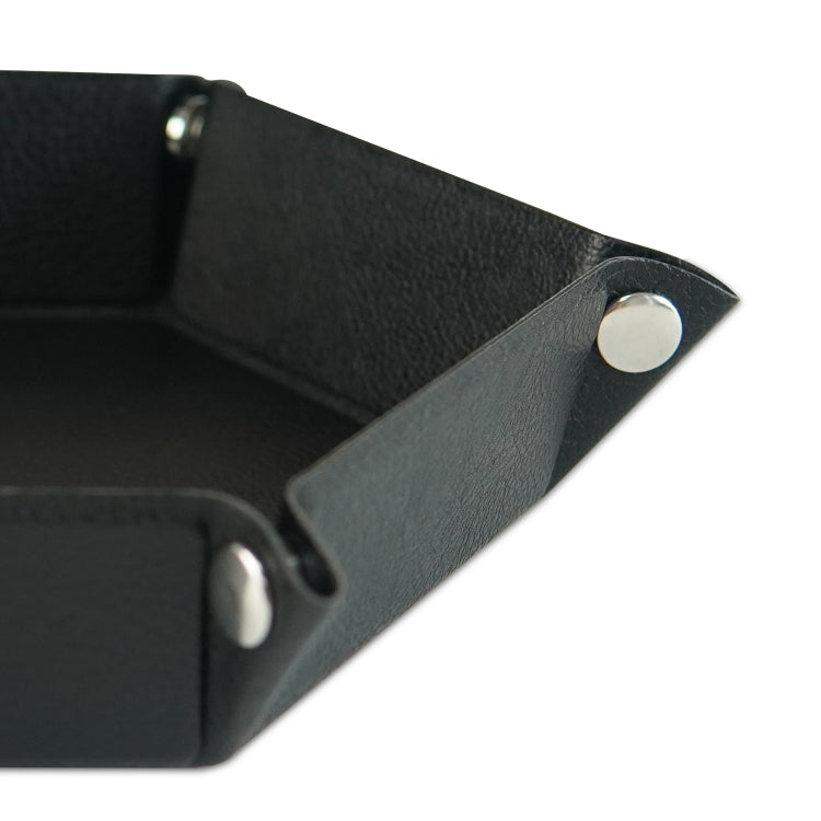 Hexagonal Desktop PU Storage Box Sundries Tray, Size:7 inch(Black)