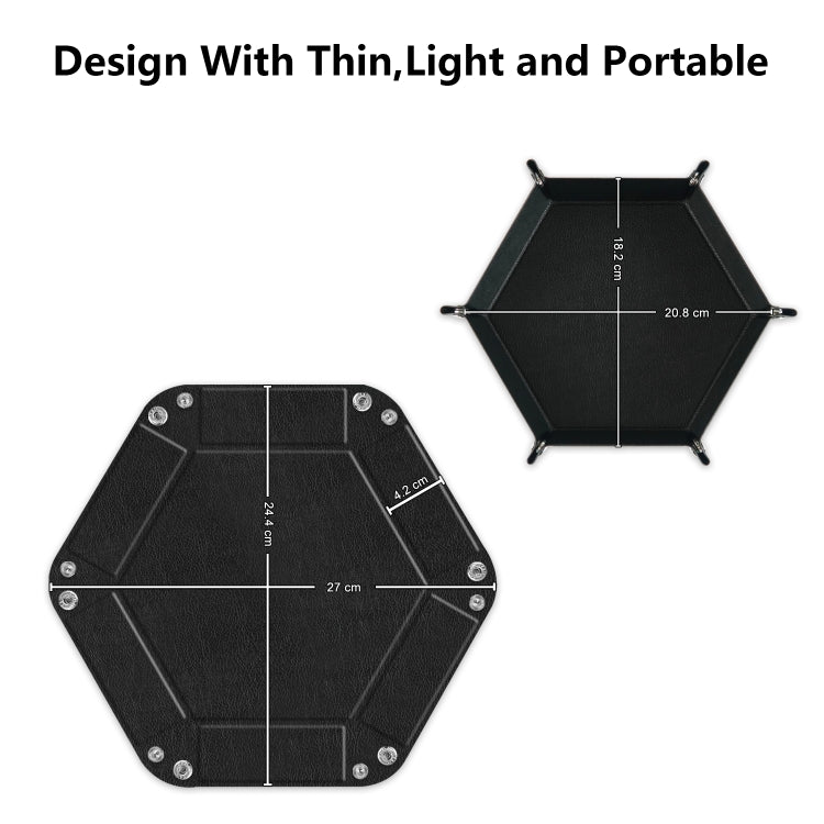 Hexagonal Desktop PU Storage Box Sundries Tray, Size:8 inch(Black)