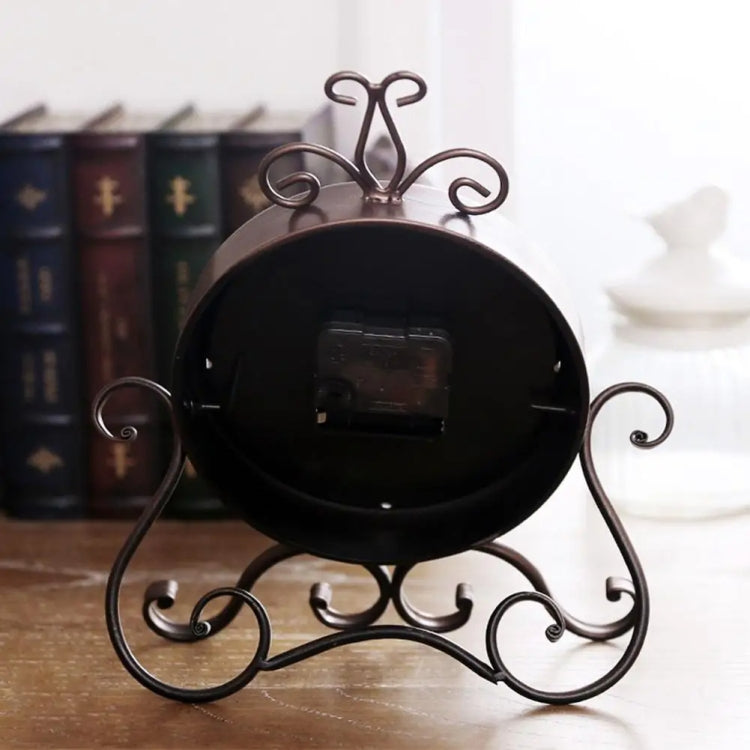 Iron Mute Clock Retro Living Room Decoration Clock(Brown)