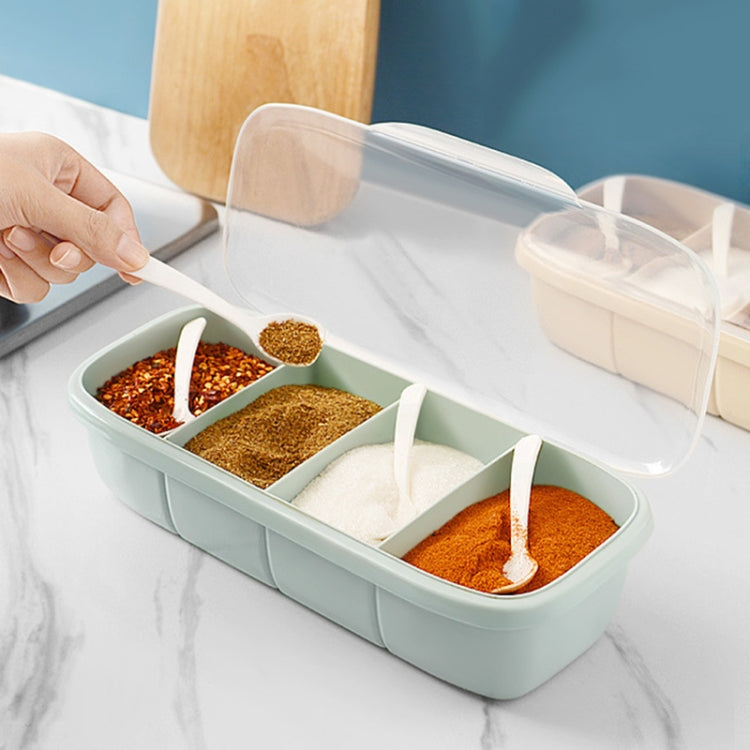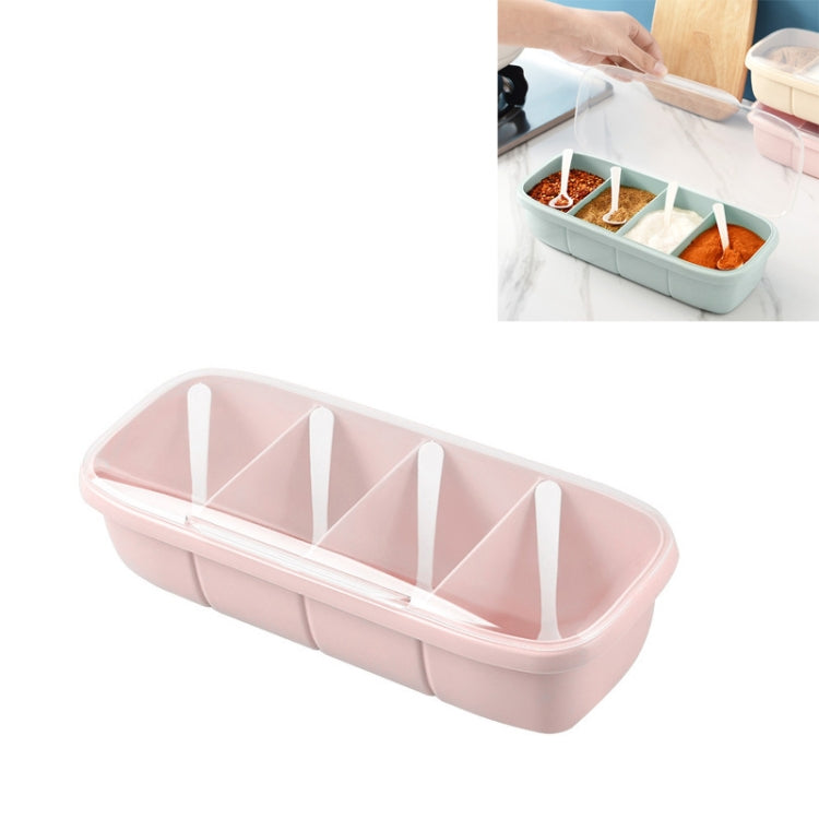 Kitchen Compartment Plastic Seasoning Box Spice Jar with Spoon & Lid(Pink)
