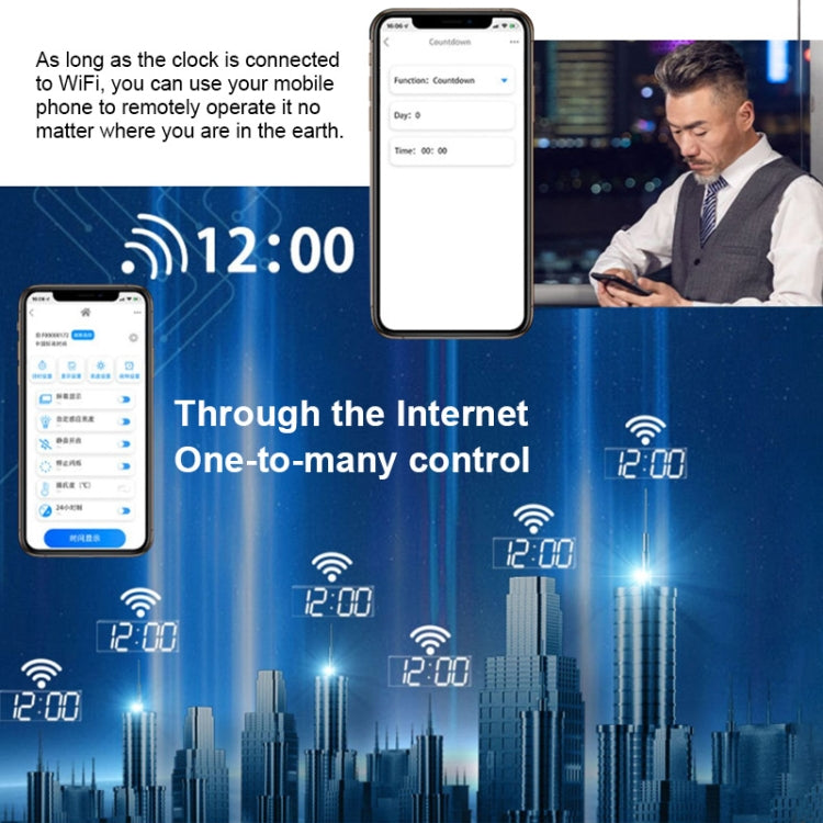 6. Function: mobile phone remote control, 5 groups of alarms, stopwatch, 999 days countdown, temperature display, calendar, intelligent light adjustment / manual 8-position brightness adjustment, power off memory function will not reset the time