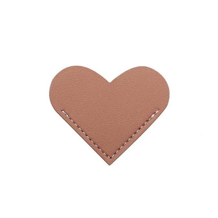 Mini Business Student Library Portable PU Leather Heart Shaped Bookmark(Milk Tea Brown)