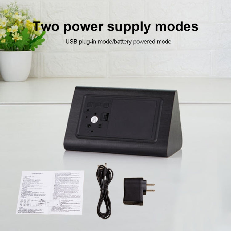 Mute Luminous Electronic Clock Wooden Sound Control Small Triangle Alarm Clock White Wood White Light