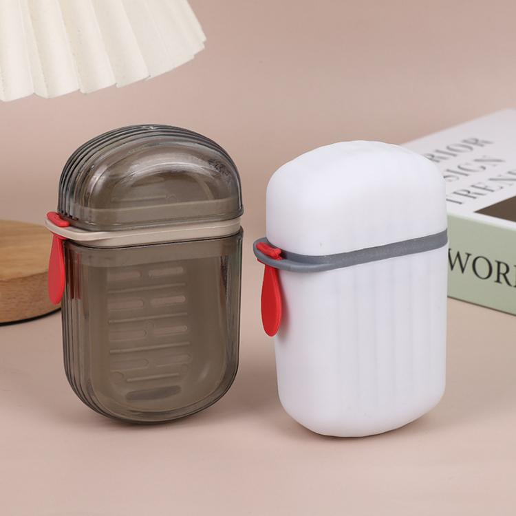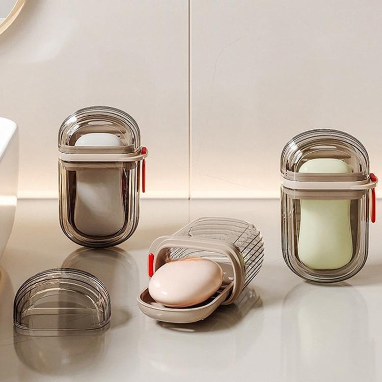 Portable Sealing Soap Box With Lid Double Drainable Travel Soap Case(Transparent Gray)